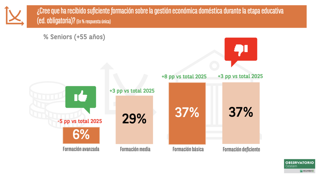 El 37,3% de los sénior reconoce tener una formación financiera deficiente y apenas un 6% alcanza un nivel avanzado