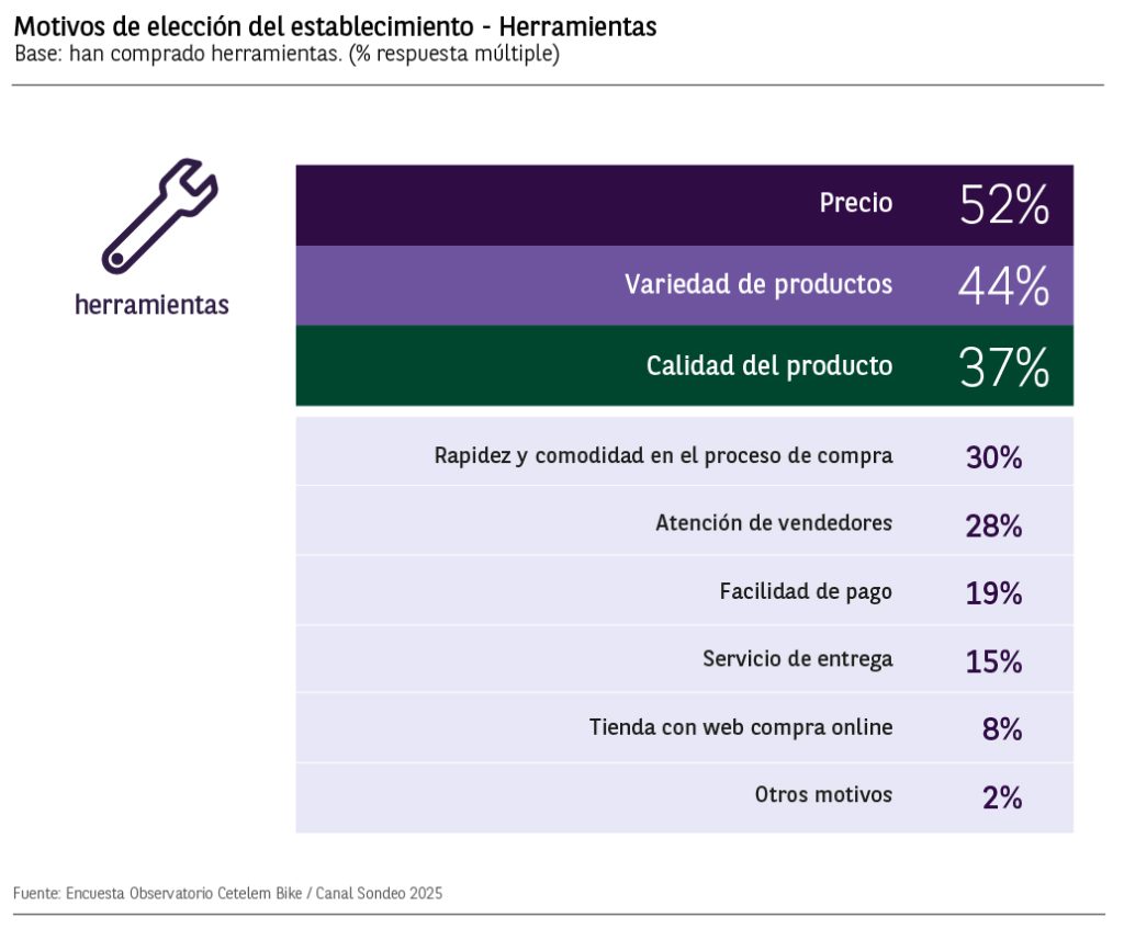 Precio, variedad de productos y calidad, los motivos decisivos para elegir la tienda donde comprar herramientas.