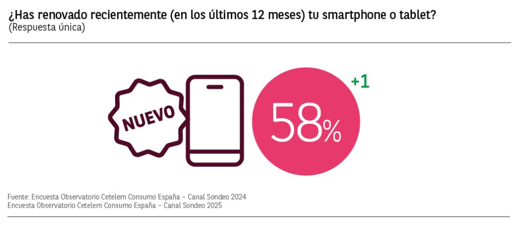Un 58% de los encuestados ha renovado su smartphone o su Tablet en los últimos 12 meses, un punto más que en 2024.
