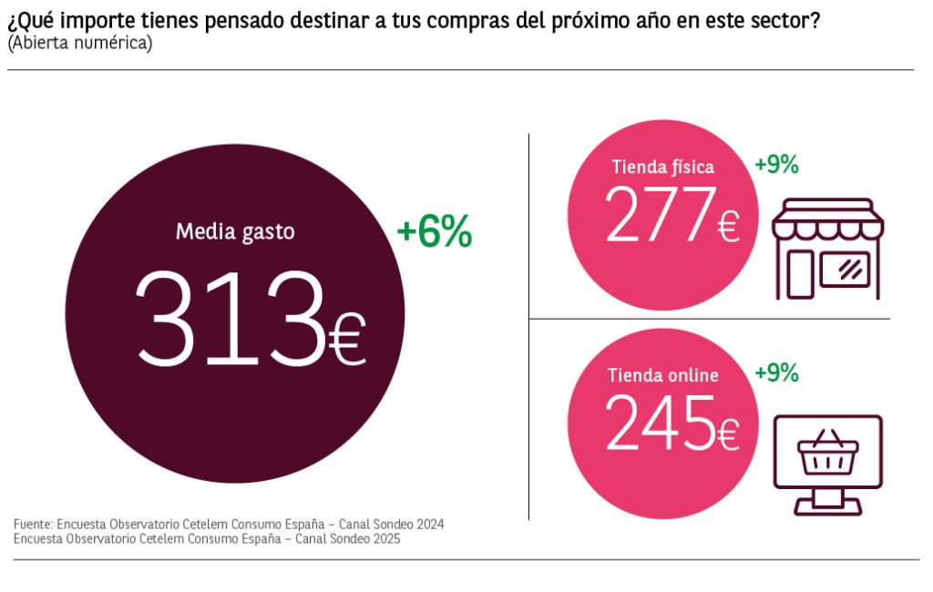 La intención de gasto en tienda física ronda una media de 277€ y en tienda online unos 245€.
