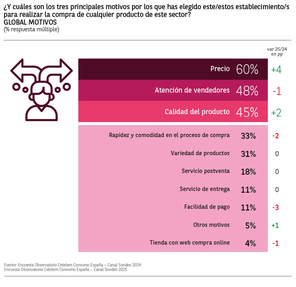 El top 3 lo cierra la calidad del producto con un 45% y un crecimiento de 2 puntos respecto a 2024.