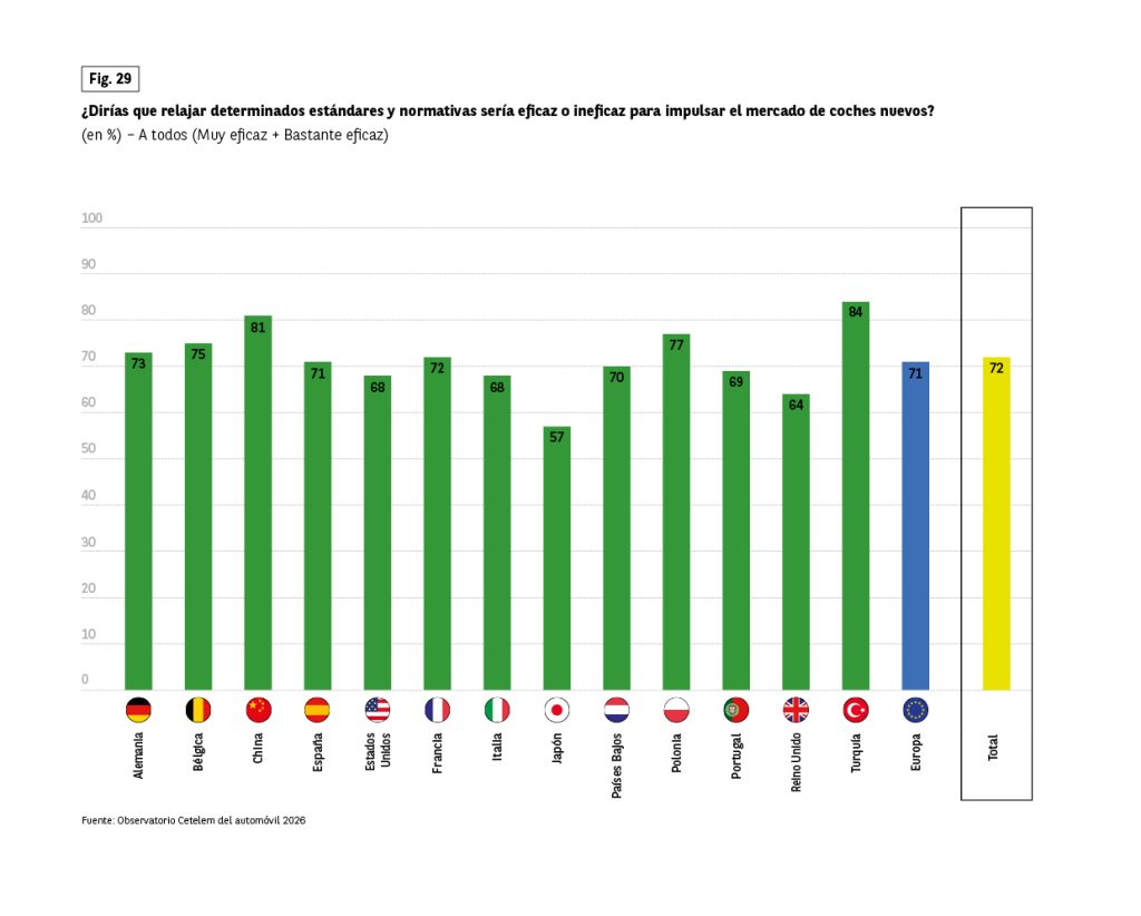 Aun así, la efectividad de las políticas públicas no debería depender únicamente de factores económicos. Frente a un entorno regulatorio que perciben como impreciso y cambiante, y por tanto restrictivo, algo más de 7 de cada 10 conductores desearía que las autoridades relajaran las normativas y regulaciones (Fig. 28).