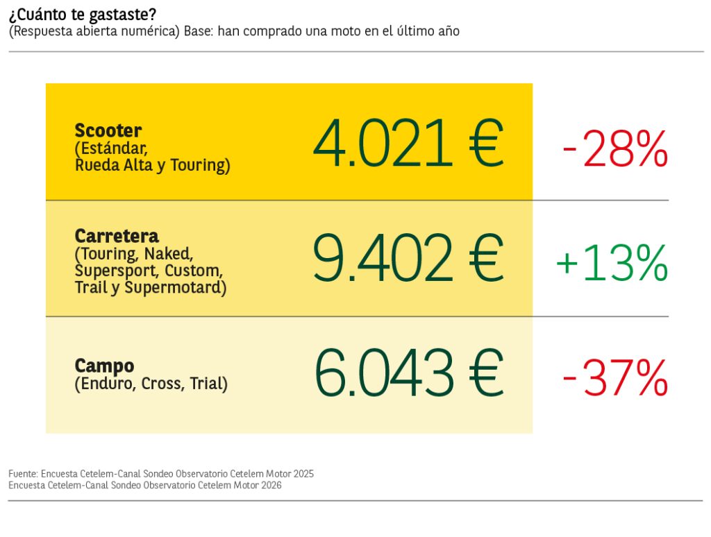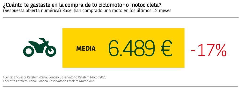 El gasto medio realizado por aquellos que compraron algún tipo de moto en 2025 fue de 6.489€, lo que supone un descenso del 17% respecto al año anterior.