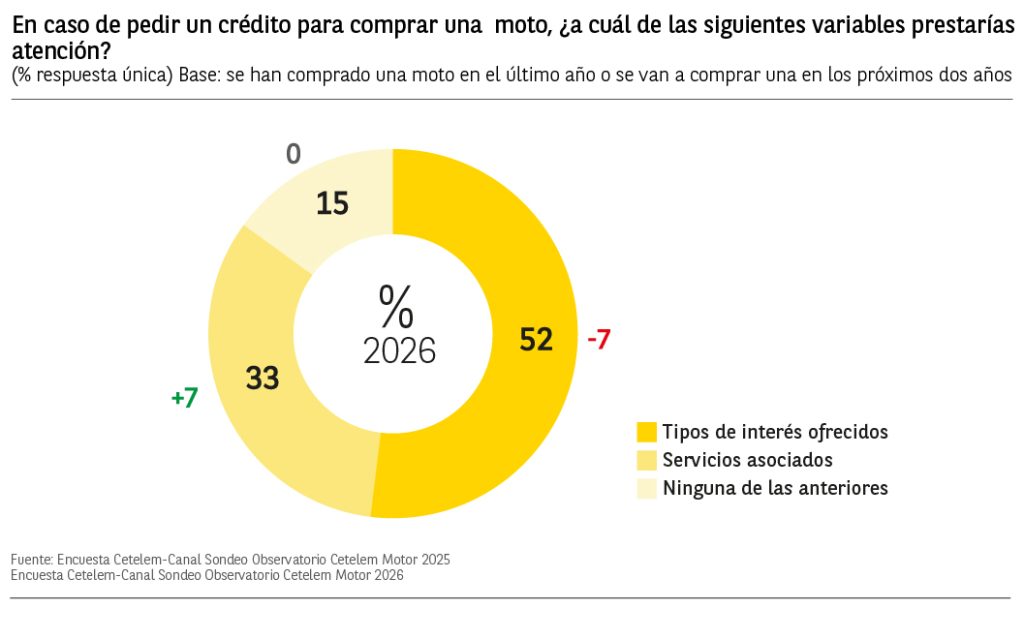 Los tipos de interés de la oferta de financiación es la variable que más destaca para el 52% de los usuarios encuestados, sobre todo para los conductores de 45 a 54 años con un 62% de menciones.