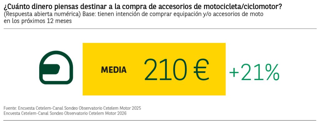 Los futuros compradores de accesorios o equipaciones gastarán una media de 210€, lo que supondría un 21% más que la intención de gasto mostrada en 2025.